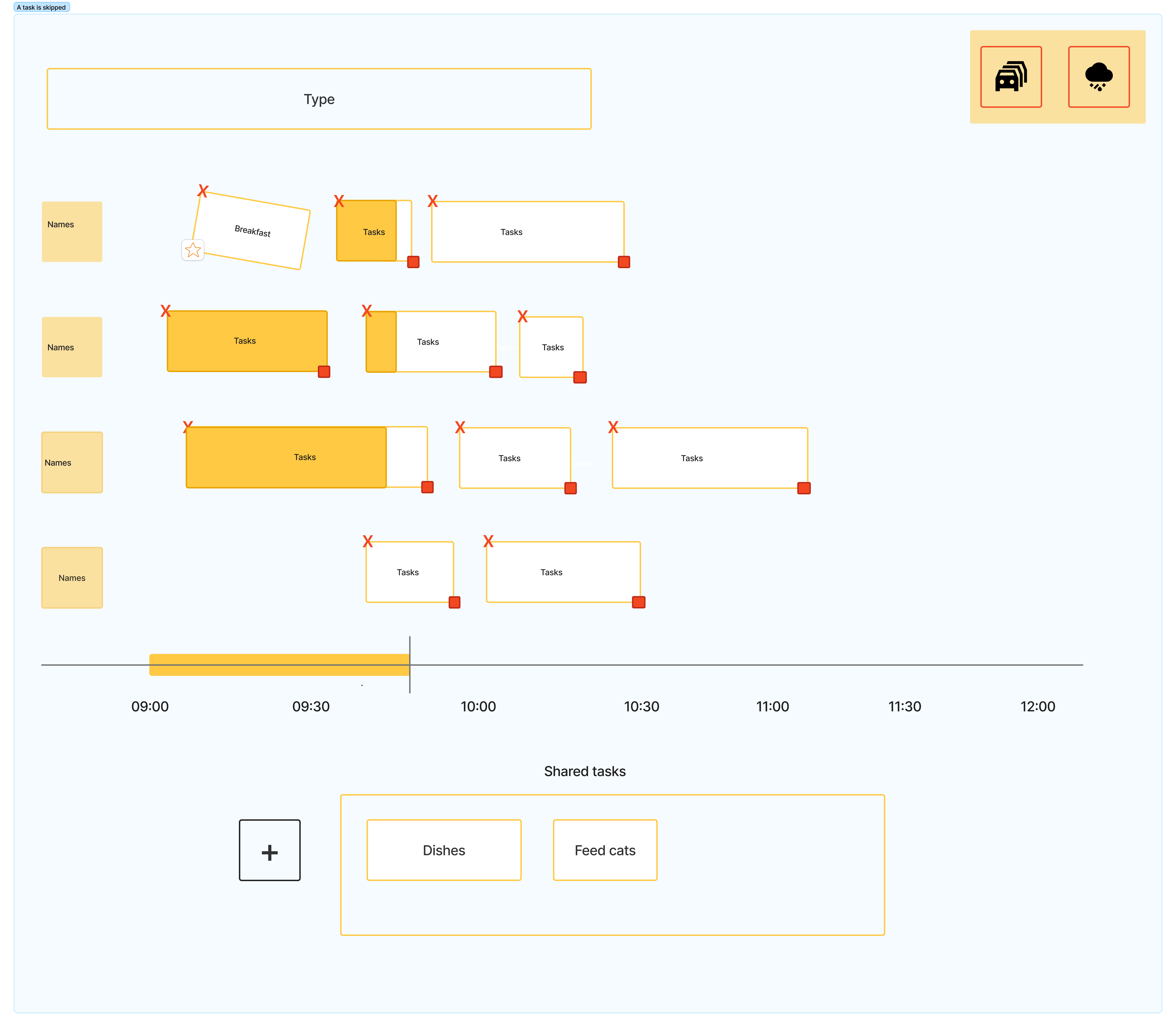 RiseUp uses a shared timeline interface to help families visualize and adapt their morning routines. The system shows task blocks, alerts for disruptions, and daily reflections.Interactions are managed via both touchscreen and a custom 3D-printed physical control.